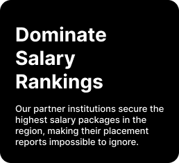 Our partner colleges consistently produce students who command superior job roles and salary packages, thus raising the institution’s average offer value above their competitors.